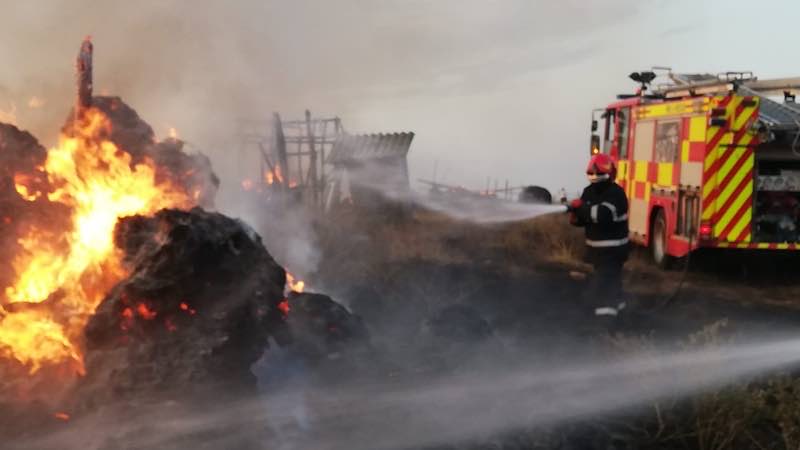 În urma evenimentului au ars circa 480 de baloți de paie, cauciucurile unui trailer și aproximativ patru hectare de vegetație uscată. Forțele de intervenție au împiedicat extinderea flăcărilor la o clădire și la zona în care se aflau peste 100 de animale (oi, capre vaci și porci).