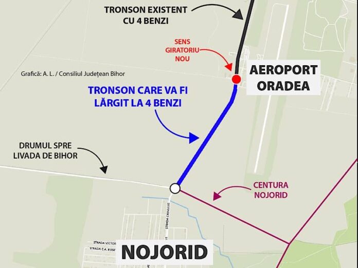 Investiția prevede lărgirea pe o lungime de 1.820 m, practic între Aeroportul din Oradea și sensul giratoriu de la intrarea în localitatea Nojorid. În plus, se va amenaja un sens giratoriu în zona Aeroportului Internațional Oradea, pentru îmbunătățirea siguranței și a fluenței traficului la una dintre cele mai circulate ieșiri din municipiu.