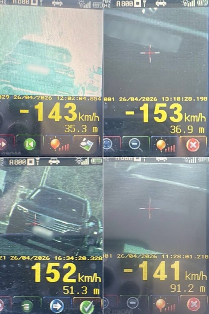 Patru șoferi au rămas fără permis pentru 120 de zile, după ce au fost surprinși circulând cu viteze extreme pe D.N.1, în localitatea Groși. Aceștia au fost înregistrați cu 153 km/h, 152 km/h, 143 km/h și 141 km/h, în zone cu limită de 70 km/h.