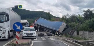 Accident rutier pe DN1-E60, în Ciucea: un camion încărcat cu tamburi...