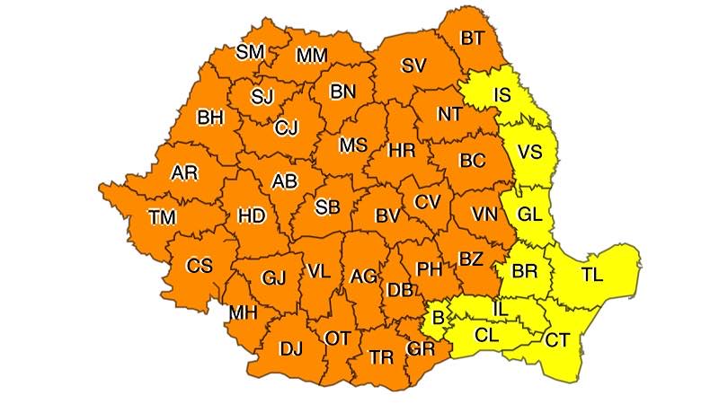 Restul țării se va afla sub Cod Galben de caniculă, iar indicele temperatură-umezeală (ITU) va depăși pe arii extinse pragul critic de 80 de unități.