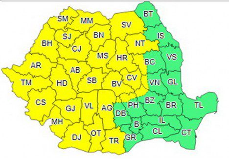 Meteorologii au emis o informare meteo de tip COD GALBEN de instabilitate atmosferică accentuată şi ploi însemnate cantitativ, valabilă în intervalul luni 24 iulie, ora 20:00 – miercuri 26 iulie, ora 03:00.