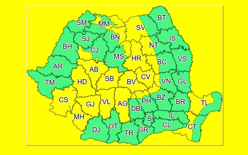 Meteorologii Administrației Naționale de Meteorologie au emis, luni, mai multe alerte meteo cod galben în care anunţă vânt puternic, vijelii, frecvente descãrcãri electrice şi grindinã până marți inclusiv în judetul Bihor.