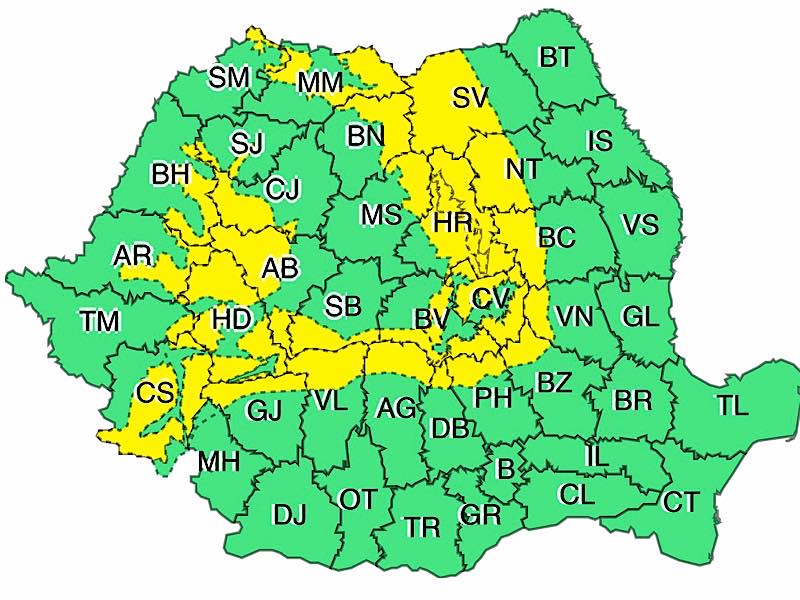 Precipitații, în general moderate cantitativ, mai ales sub formă de lapoviță și ninsoare, vor fi și în Maramureș și în nord-estul Transilvaniei. Izolat vor fi depuneri de polei. Temporar vântul va avea intensificări și în restul teritoriului, cu rafale de 50…60 km/h, mai spun meteorologii.