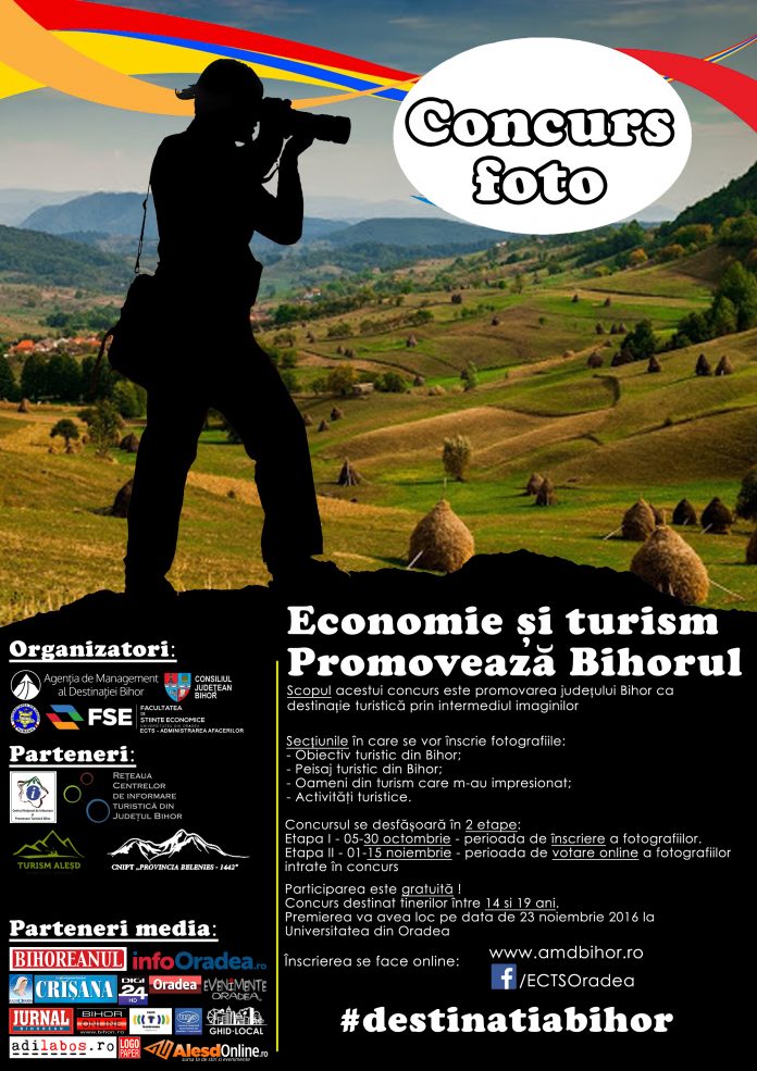 Concursul de fotografie: „Economie și turism – Promovează Bihorul” este organizat de Departamentul de Economie al Facultății de Științe Economice din cadrul Universității din Oradea, Agenția de Management al Destinației Bihor și Consiliul Județean Bihor.