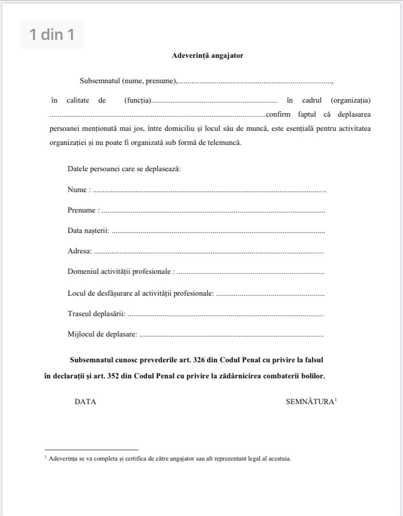 Declarația pe proprie răspundere completată se va afla în posesia persoanei care efectuează deplasarea, împreună cu documentul de identitate, și va fi pusă la dispoziția reprezentanților Poliției Române, ai Jandarmeriei sau ai Poliției Locale la momentul legitimării persoanei.