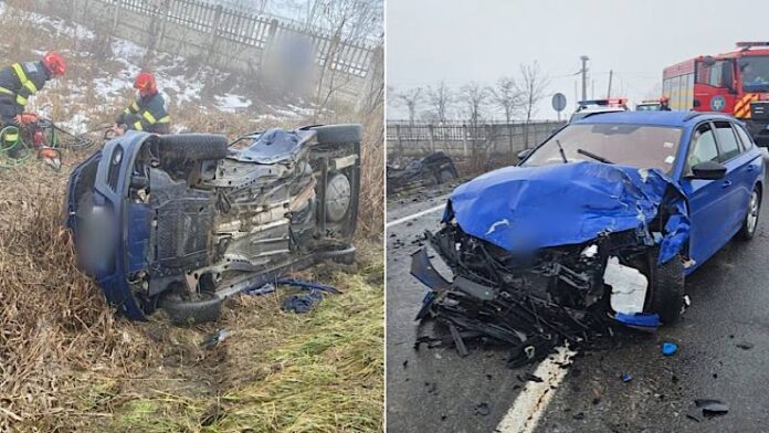 În eveniment au fost implicate două autoturisme, dintre care unul s-a răsturnat în urma impactului. În interiorul acestuia se afla un bărbat rămas încarcerat, care a fost extras de către pompieri cu ajutorul echipamentelor din dotare. Victima a fost în permanență conștientă și cooperantă, primind îngrijiri medicale la fața locului din partea echipajului Serviciului de Ambulanță Județean.