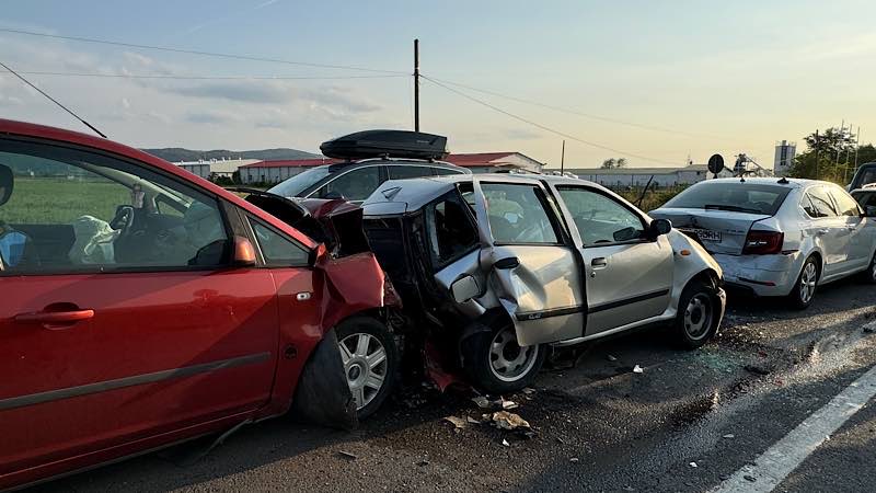 Un accident în lanț a avut loc la ieșirea din orașul Aleșd spre Oradea, implicând șase autovehicule.