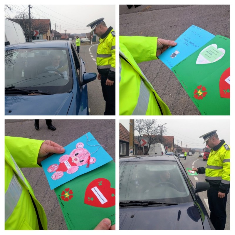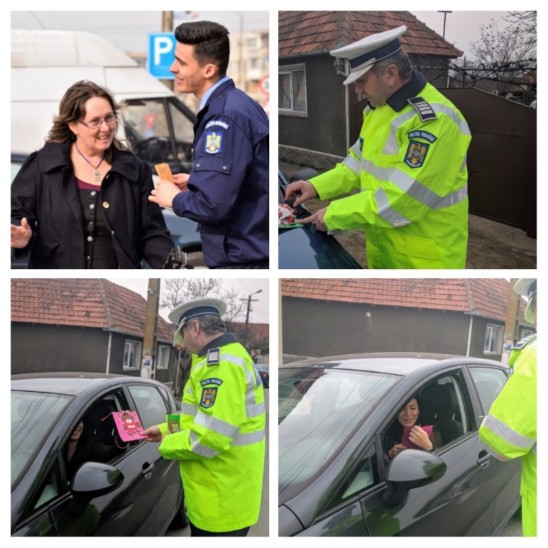 De 1 Martie, polițiștii bihoreni au oferit doamnelor și domnișoarelor prezente în trafic, mărțișoare cu mesaje preventive, create de copii.
