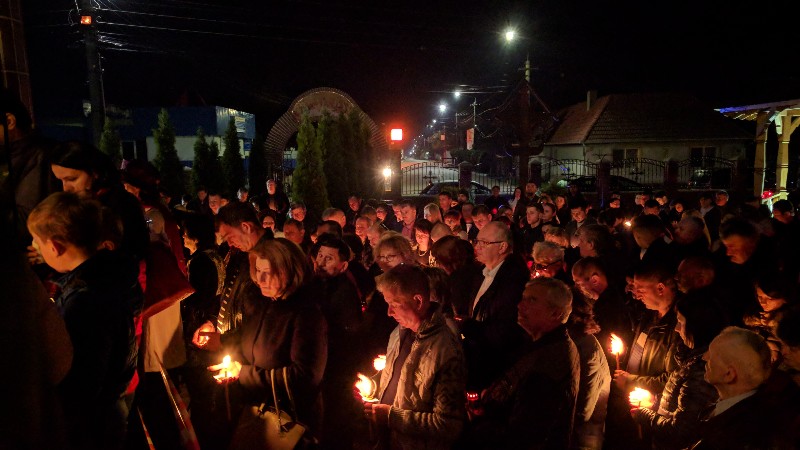 Slujba Învierii a fost oficiată de părintele paroh Ovidiu Bocșan al Bisericii Ortodoxe cu hramul Nașterea Sfântului Ioan Botezătorul din Aleșd.