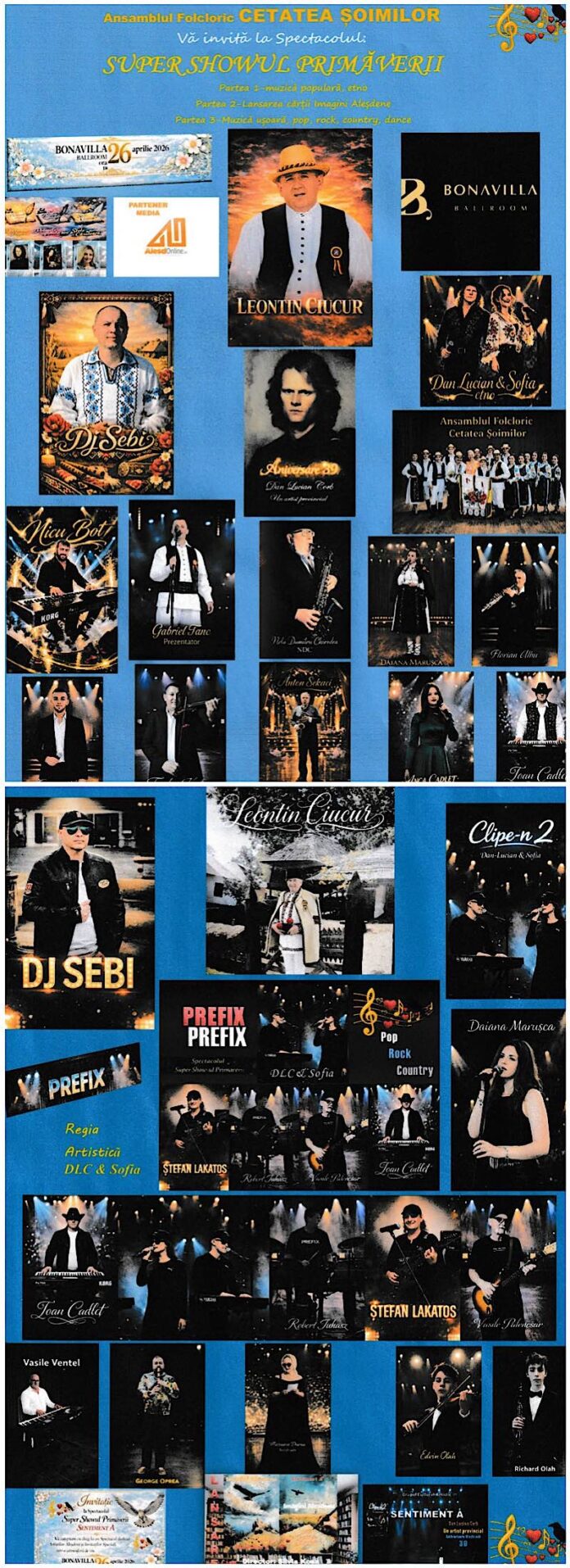 Publicul din Aleșd este invitat la un eveniment artistic de excepție, organizat de grupurile culturale Sentiment A și Cetatea Șoimilor. „Super Showul Primăverii” va avea loc duminică, 26 aprilie 2026, de la ora 18:00, într-o locație elegantă – Bonavilla Ballroom.