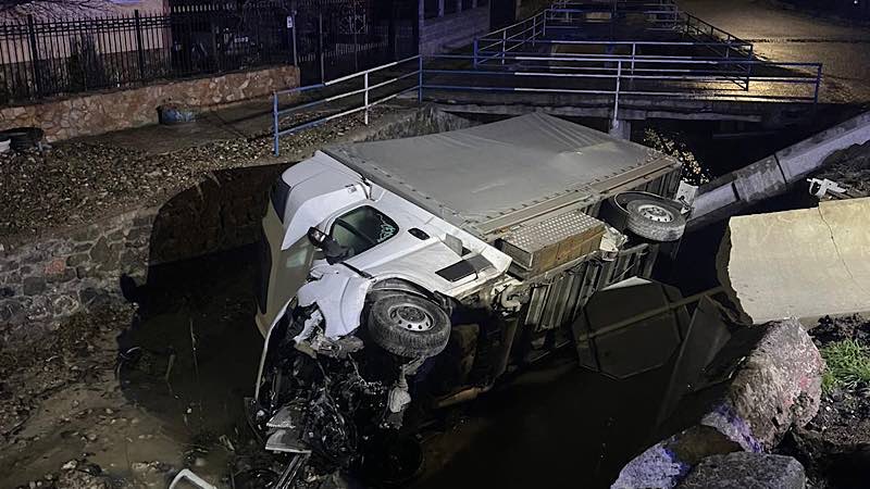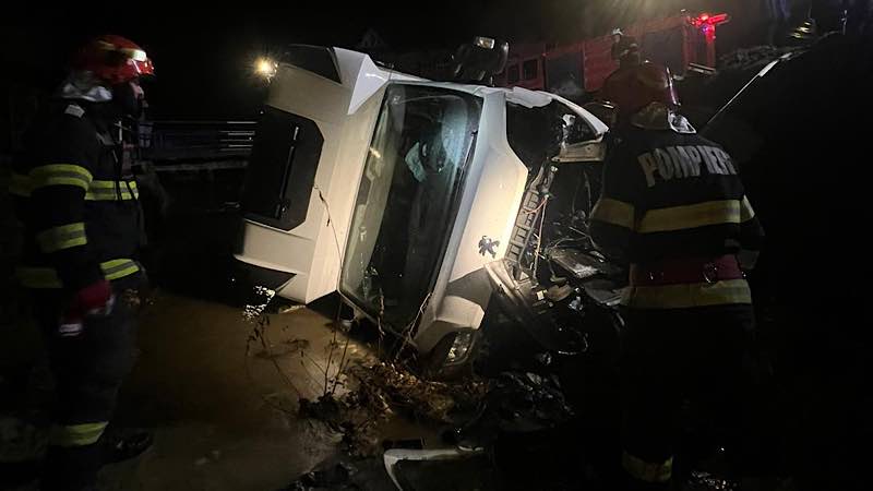 Șoferul unei autoutilitare ar fi pierdut controlul volanului iar autovehiculul a căzut de pe un pod.
