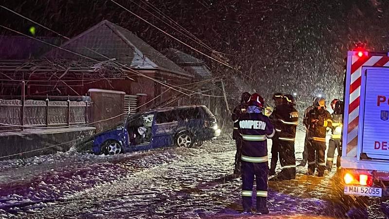 În noaptea trecută, în localitatea Lugașu de Jos, un autoturism a ieșit de pe carosabil, lovind un stâlp de electricitate, care s-a prăbușit peste mașină. Incidentul s-a produs în condiții de ninsoare abundentă, iar carosabilul era acoperit cu zăpadă.