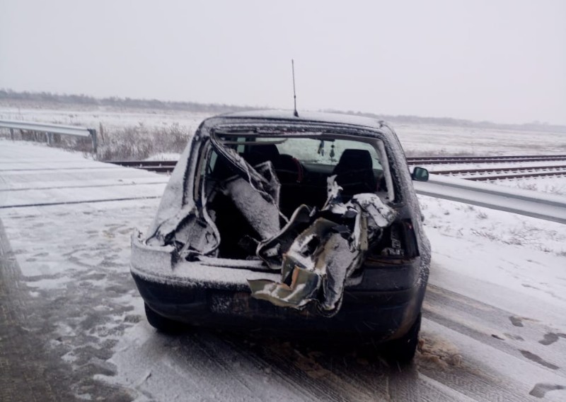 Maşină lovită de tren la o trecere de nivel cu calea ferată din Telechiu