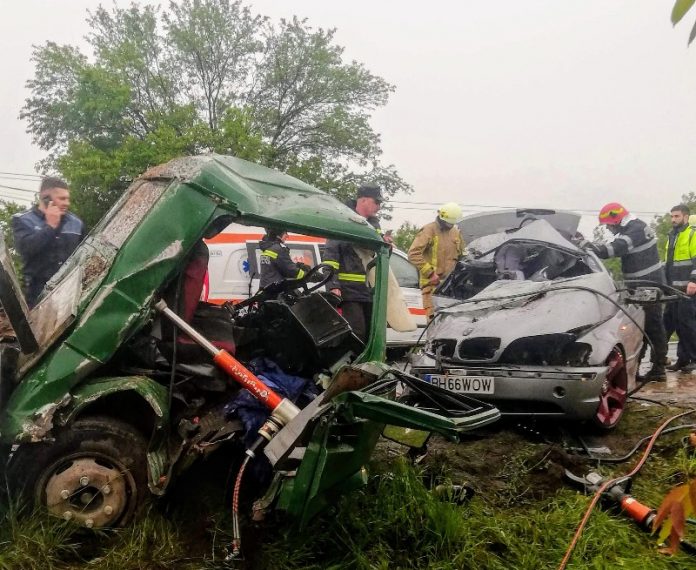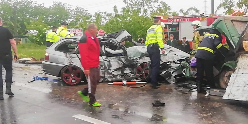 Ajunși la locul producerii accidentului, pompierii militari au acționat pentru descarcerarea unui adult și a celor doi copii rămași captivi în autoutilitara avariată, respectiv pentru evacuarea șoferului autoturismului, care, din nefericire, a fost declarat.