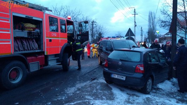 Potrivit martorilor de la fața locului, in accident au fost implicate trei mașini.A fost nevoie de intervenția pompierilor pentru a descarcera persoana rănită.