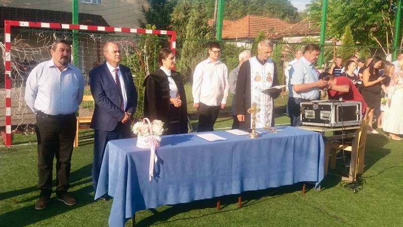 Festivitatea a continuat cu slujbele religioase oficiate de preotul ortodox Mititean Vandici Aurelian Florin, preotul greco-catolic Tantaș Vasile și doamna părinte reformat Kabai Kitti. Din partea preoților a luat cuvântul preotul Tantaș, care a subliniat importanța repetiției în procesul de învățare și a încurajat autoritățile să nu se oprească niciodată din a investi în școală. La rândul ei, doamna părinte reformat Kabai Kitti a întrebat un elev din clasa pregătitoare ce ar trebui să conțină ghiozdanul unui elev. Răspunsul a fost: „cărți, caiete, creioane, batistă”. Ea a completat cu un citat din Biblie (2 Petru 1:5-7), subliniind importanța credinței, cunoștinței, răbdării și iubirii de oameni.