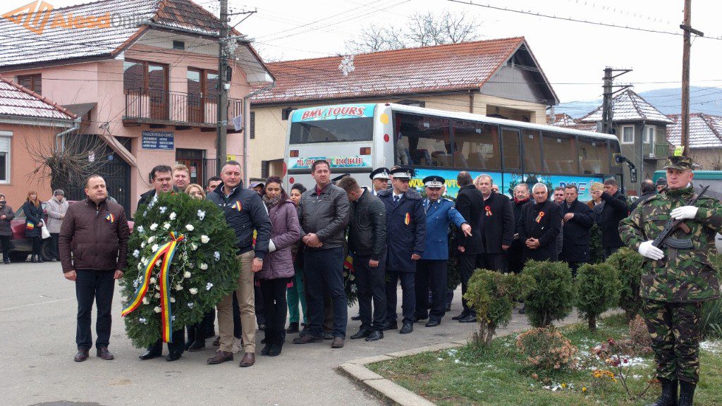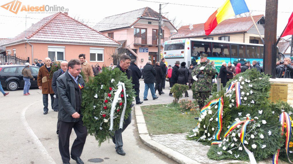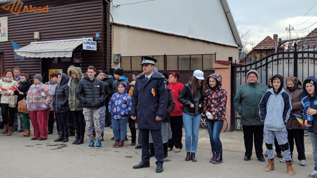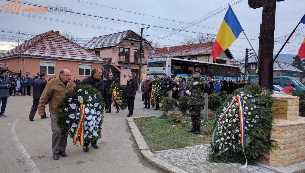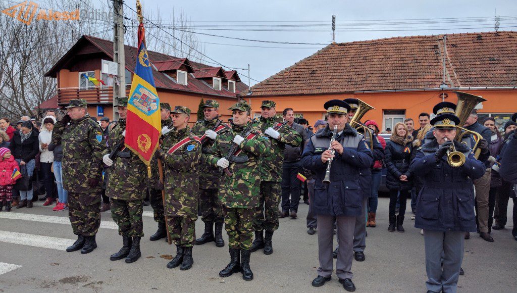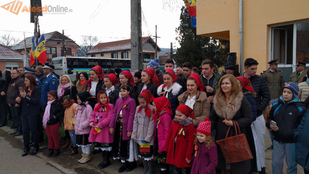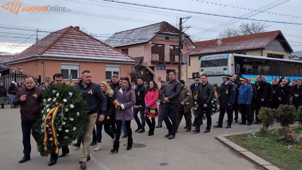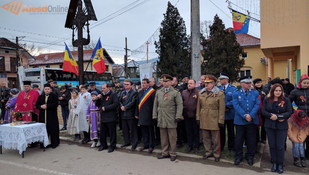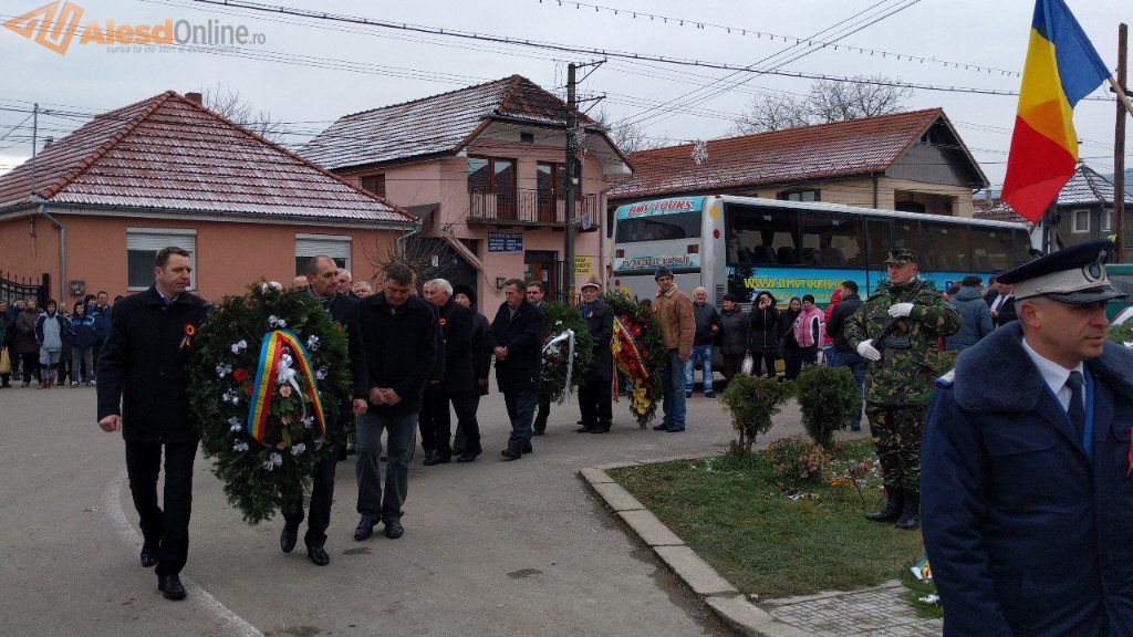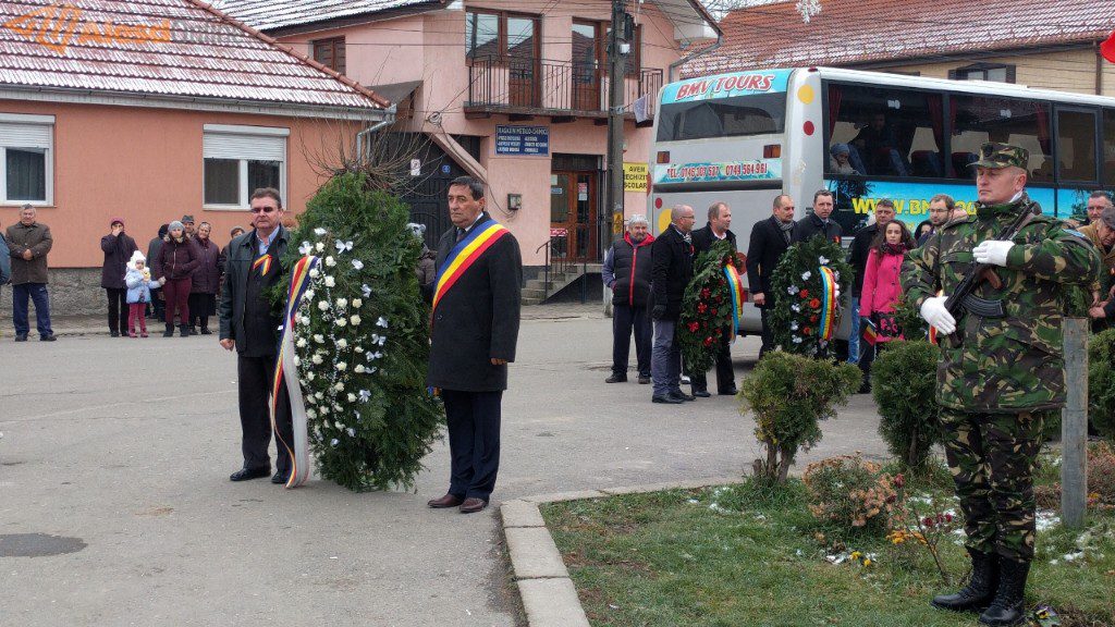 Ceremonia a fost deschisă de prezentarea onorului, salutarea drapelului de luptă, urmată de intonarea Imnului Național. Slujba religioasa a fost oficiată de preotul Mititean Sorin. Profesorul Mălai Florin Olimpiu a evocat evenimentele din 1918, iar in cadrul programului artistic cei prezenţi au putut asculta melodii patriotice interpretate de un tanar talentat, iar corul bisericii ortodoxe a cântat cateva colinde. A urmat apoi festivitatea de depunere de coroane la troiţa ridicată în cinstea eroilor căzuţi în cele două războaie mondiale. Evenimentul s-a terminat cu defilarea gărzii de onoare.